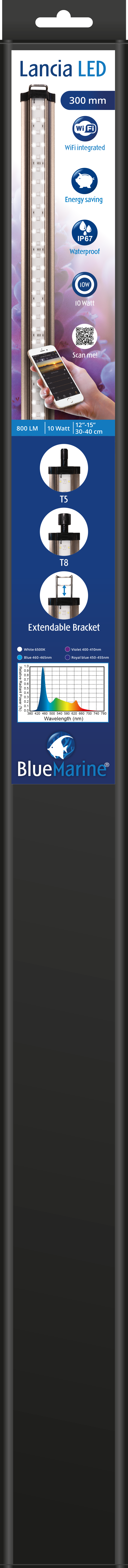 Erhältlich in 7 Längen und kann mithilfe der Halterungen oder mit den mitgelieferten T5- und T8-Adaptern auf unterschiedliche Weise installiert werden. Der Lancia verfügt über vier Arten von LEDs: Weiß, Blau, Königsblau und Violett. Insbesondere das violette Licht ist für das Korallenwachstum unerlässlich und einzigartig unter den LED-Streifenlichtern auf dem Markt.