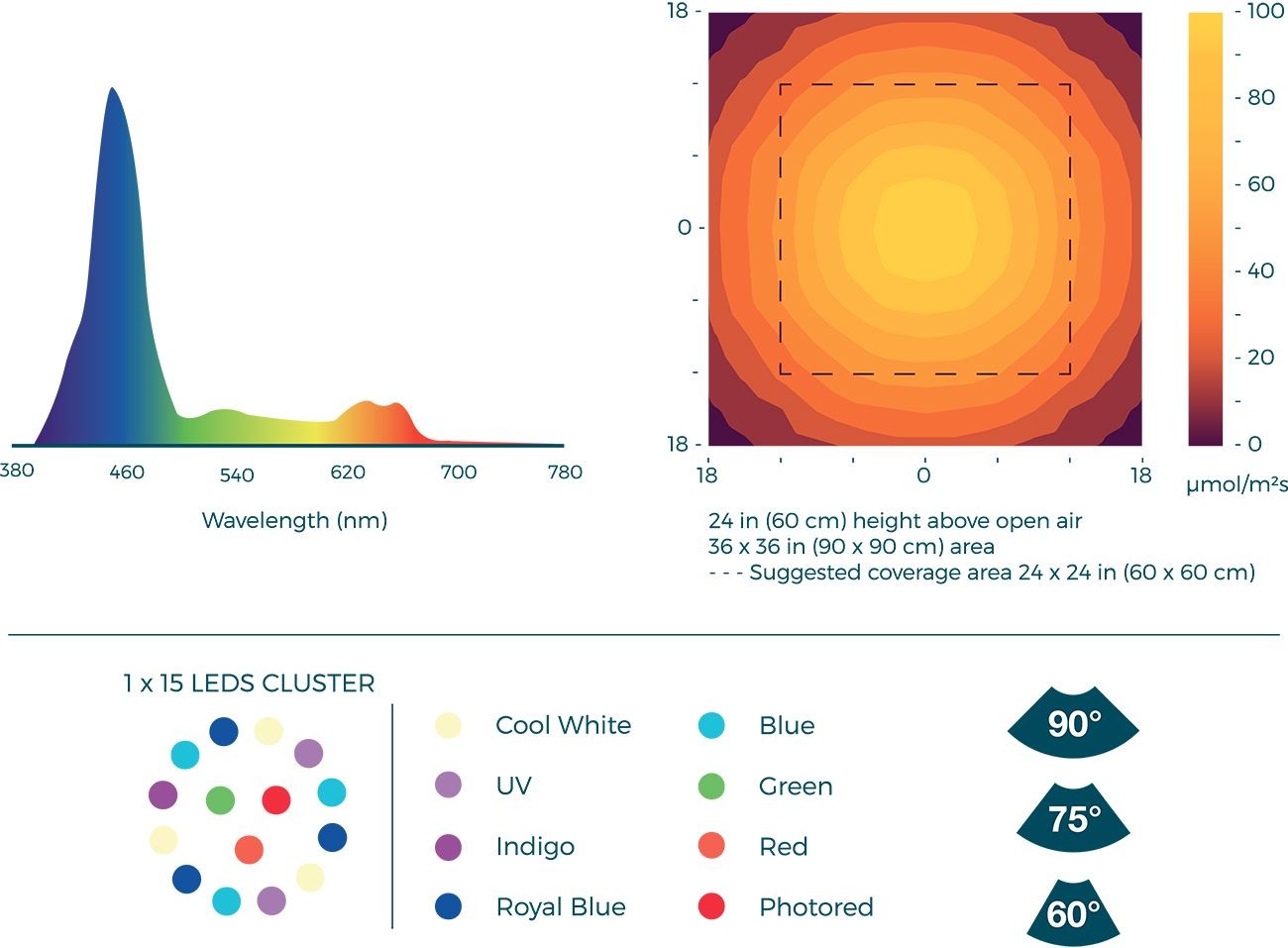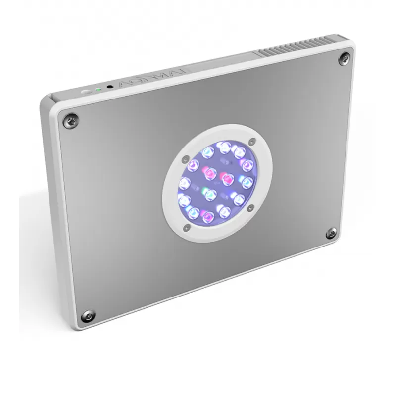 Aqamai LRs ist die professionelle LED-Lampe für Ihr Aquarium, voll programmierbar über die App Aqamai (Android-Apple iOS). Das schlanke und elegante Design mit einer Gesamtdicke von 20 mm umfasst ein leises Kühlsystem, 1 Cluster mit 15 LEDs, 50 W und 6 Farbkanäle, die über eine mobile Anwendung verwaltet werden können (Farbtemperatur und Lichtintensität).