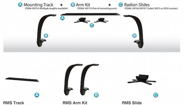 - Flexible RMS Slide-Montagehalterungen sorgen für eine präzise Platzierung Ihrer Radions