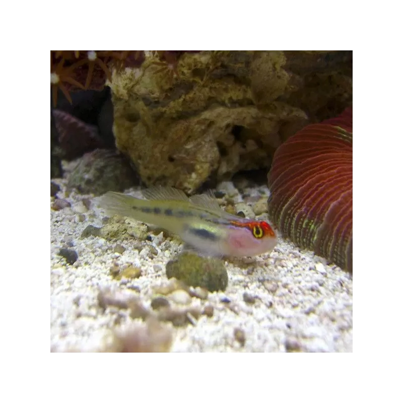 Ein lustiger und kleiner Fisch, der sich sehr gut für Nano-Aquarien eignet, ist die Rotkopfgrundel. Diese kleinen Backenzähne sind recht scheu und brauchen ausreichend Versteckmöglichkeiten zwischen den Steinen, um sich zu verstecken, graben sie Löcher unter den Steinen, um sich zu verstecken.