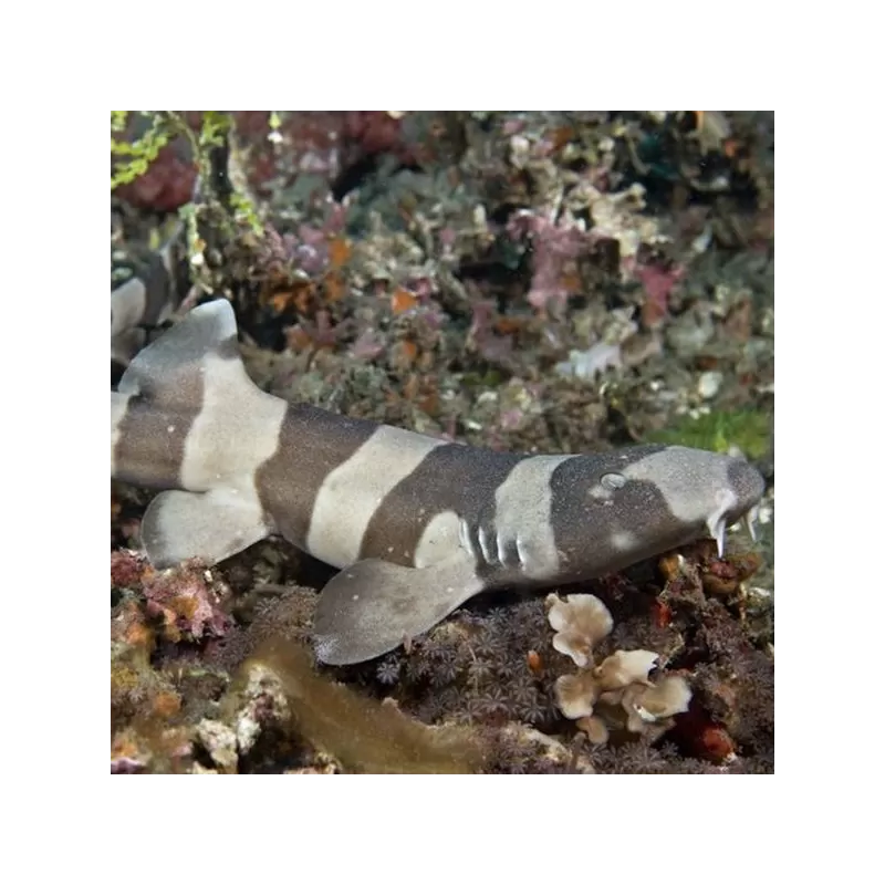 Der Brownbanded Bambooshark oder Brown Bamboo Shark ist ein friedlicher Hai, der in Gefangenschaft etwa 100 cm lang wird. Aufgrund ihrer Schwimmweise können diese Tiere nicht in einem zu kleinen Aquarium gehalten werden und müssen daher wirklich Platz haben, um herumschwimmen zu können.
