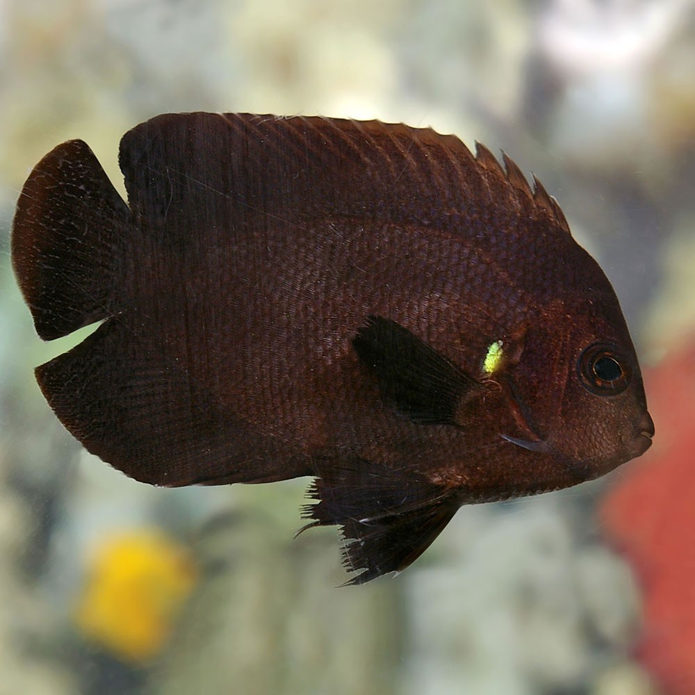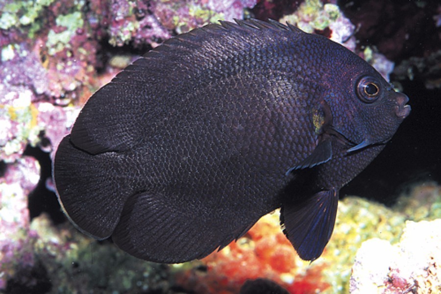 Der Schwarze Zwergkaiser- oder Mitternachtskaiserfisch wird etwa 9 cm lang und eignet sich sowohl für große als auch für kleinere Aquarien.