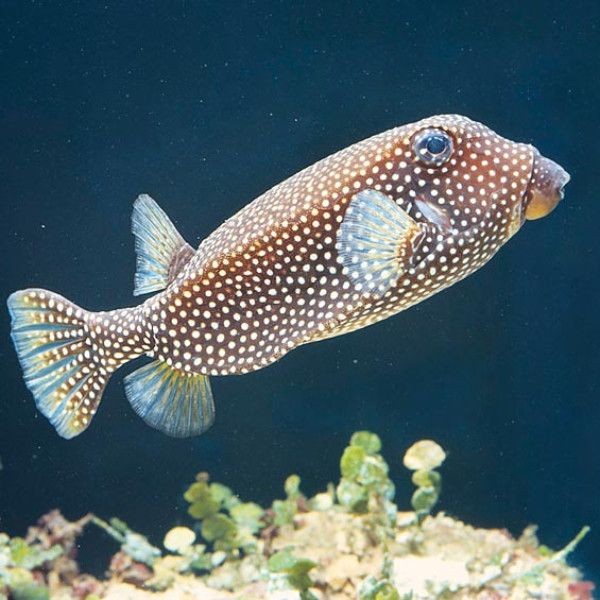 Ein Weißfleckiger Kofferfisch wird 25 cm groß und ist ein langsamer Schwimmer, also definitiv nicht für ein Aquarium mit starker Strömung geeignet.