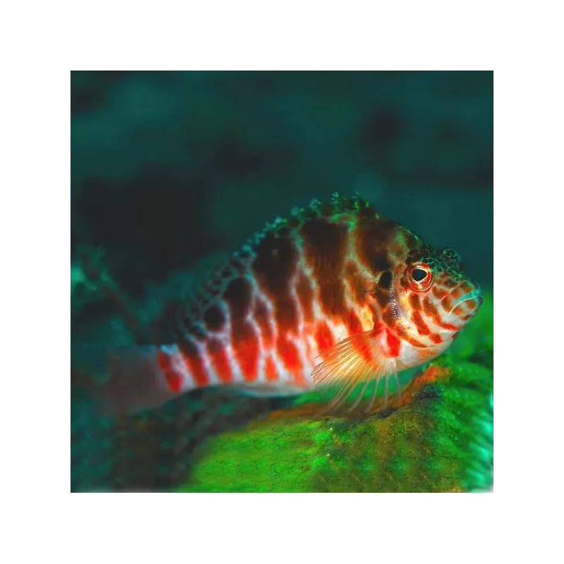 Ein Korallen-Habichtsfisch wird bis zu 10 cm groß und ist ein langsamer Schwimmer, also definitiv nicht für ein Aquarium mit starker Strömung geeignet. Es hat keine Schwimmblase, was bedeutet, dass es sinkt und daher mehr am Boden und in der Koralle hängen bleibt, als dass es herumschwimmt.