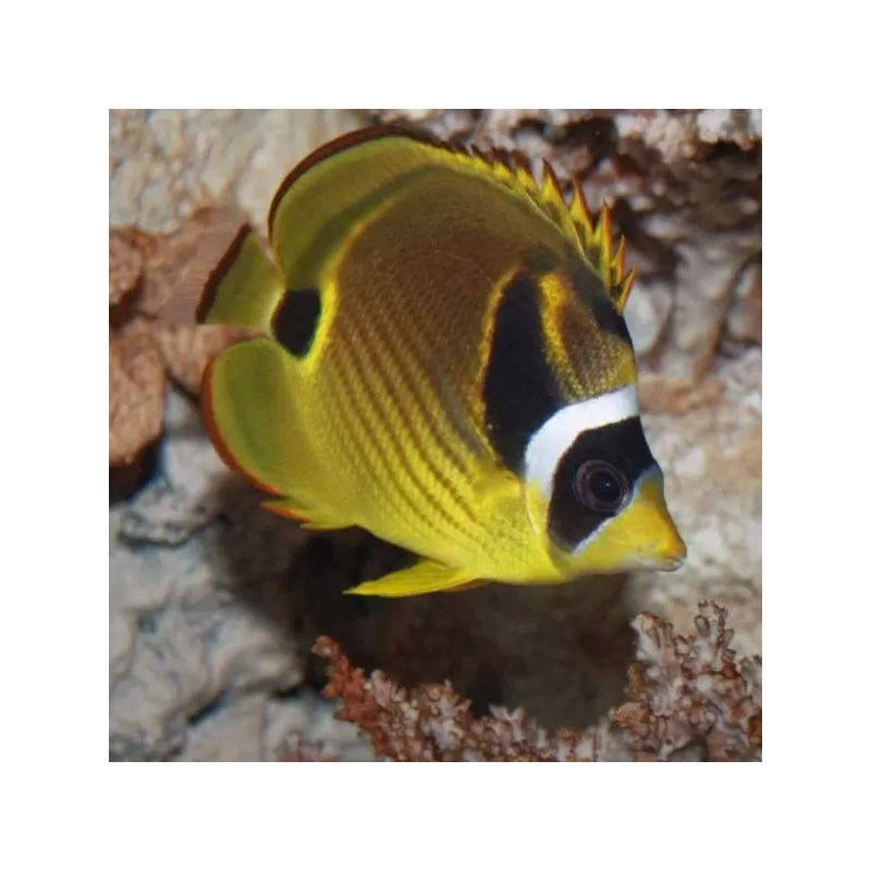 Der Waschbär-Falterfisch wird etwa 22 cm groß und benötigt viele Verstecke sowie einen offenen Schwimmraum. Diese Tiere werden oft gegen einen Glasanemonenbefall eingesetzt, obwohl nicht jeder Schmetterlingsfisch sie tatsächlich frisst.