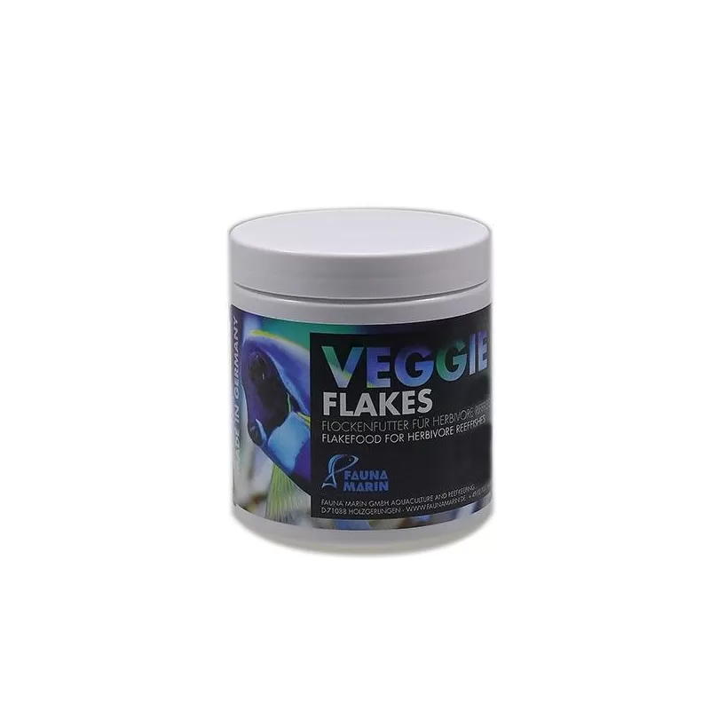 Fauna Marin Veggi Flakes bestehen aus 7 verschiedenen Meeresalgen, Phytoplankton und frischen Meeresfrüchten – die perfekte Rezeptur aus frischen Rohstoffen für vitale Rifffische. Unser spezielles Herstellungsverfahren reduziert das Ausbluten wichtiger Nährstoffe in das umgebende Wasser erheblich. Vegetarische Flocken trüben das Wasser nicht.