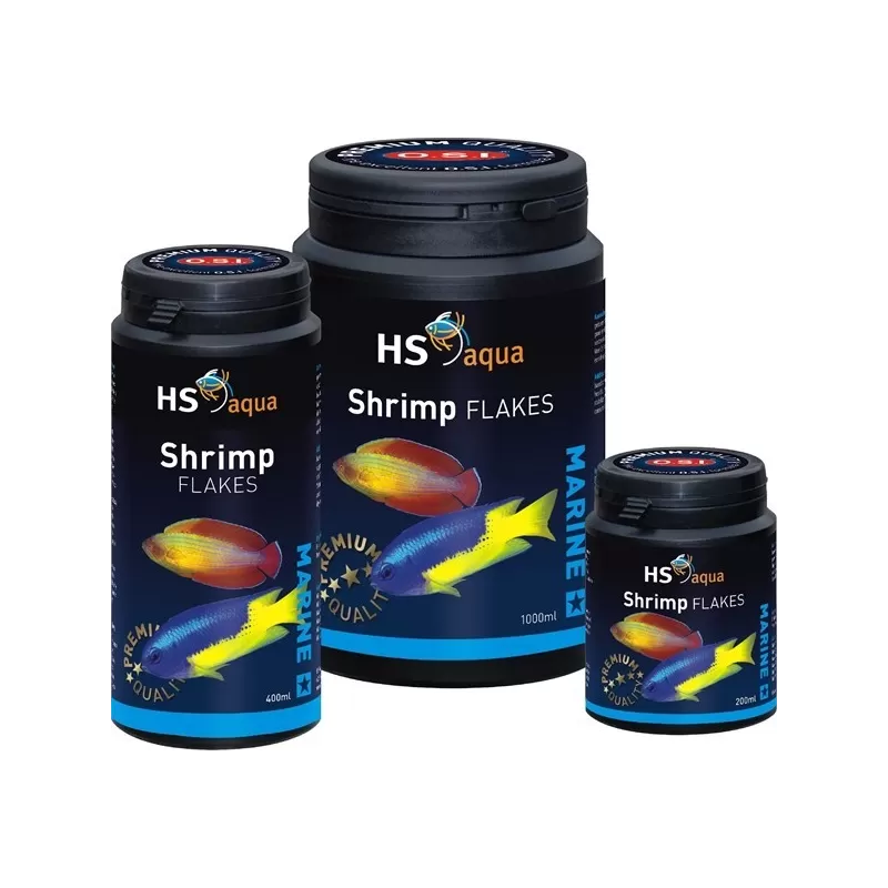 HS Aqua Marine Shrimp Flakes ist ein Ergänzungsfutter für tropische Meerwasserfische. Basierend auf Flusskrebsen mit einem hohen Gehalt an natürlichen Carotinoiden zur Förderung von Farbe, Wachstum und Gesundheit. Ideal für fleischfressende Fische und Garnelen. Enthält leicht verdauliche Proteine, Knoblauch und stabilisiertes Vitamin C, die das Wasser nicht trüben.