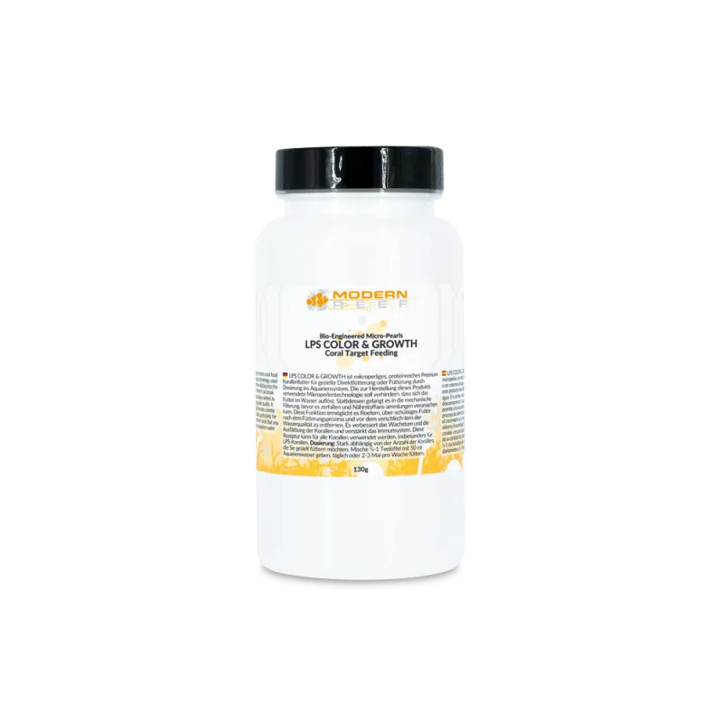 Geben Sie Ihren LPS-Korallen (Large Polyp Stony) die ultimative Nährstoffunterstützung mit Modern Reef LPS Color & Growth (Micro-Pearl) 130 g. Diese speziell formulierten Mikroperlen sind auf die besonderen Bedürfnisse von LPS-Korallen zugeschnitten und sorgen für eine verbesserte Farbintensität und ein gesundes, schnelles Wachstum. Dank der hochwertigen Zusammensetzung aus Aminosäuren, Vitaminen und Spurenelementen wird Ihr Riff lebendiger und stärker als je zuvor.