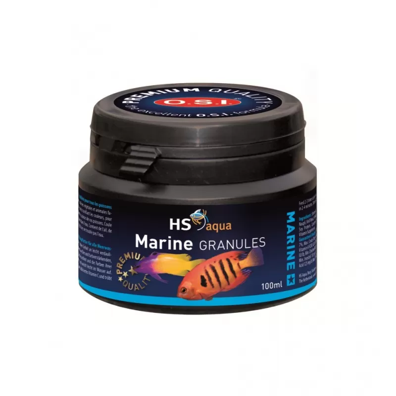 HS Aqua Marine Granulat 100 ml ist ein ausgewogenes Alleinfutter für alle Meerwasser-Aquarienfische. Dieses Futter hat einen hohen Anteil an leicht verdaulichen pflanzlichen und tierischen Proteinen und farbverstärkenden, natürlichen Pigmenten, die das Wachstum, die Gesundheit und die Farbe Ihrer Fische fördern.