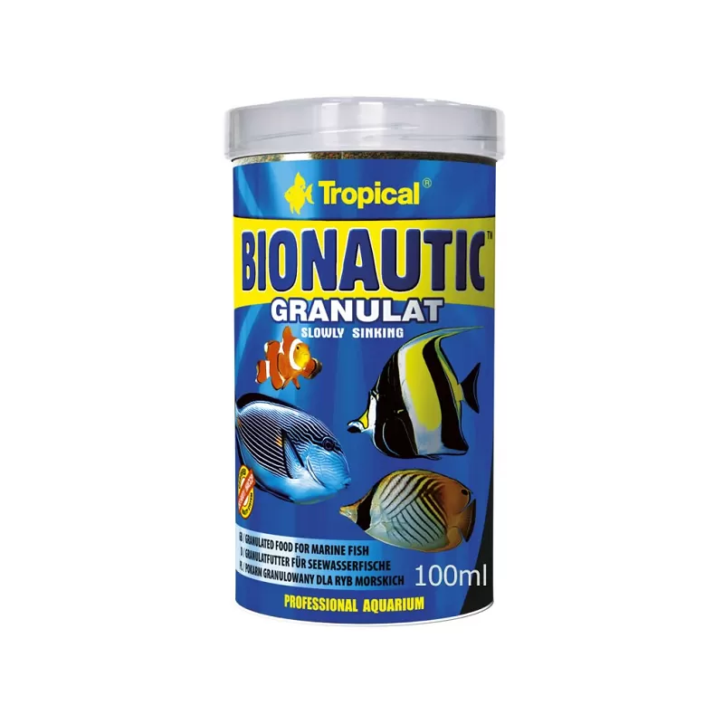 Tropical Bionautic Granulat 500 ml ist ein zutatenreiches Granulatfutter für kleine bis mittelgroße Meeresfische, Krebstiere und Wirbellose. Das Granulat weicht sehr schnell auf, sodass Ihre Fische das Futter schneller annehmen.