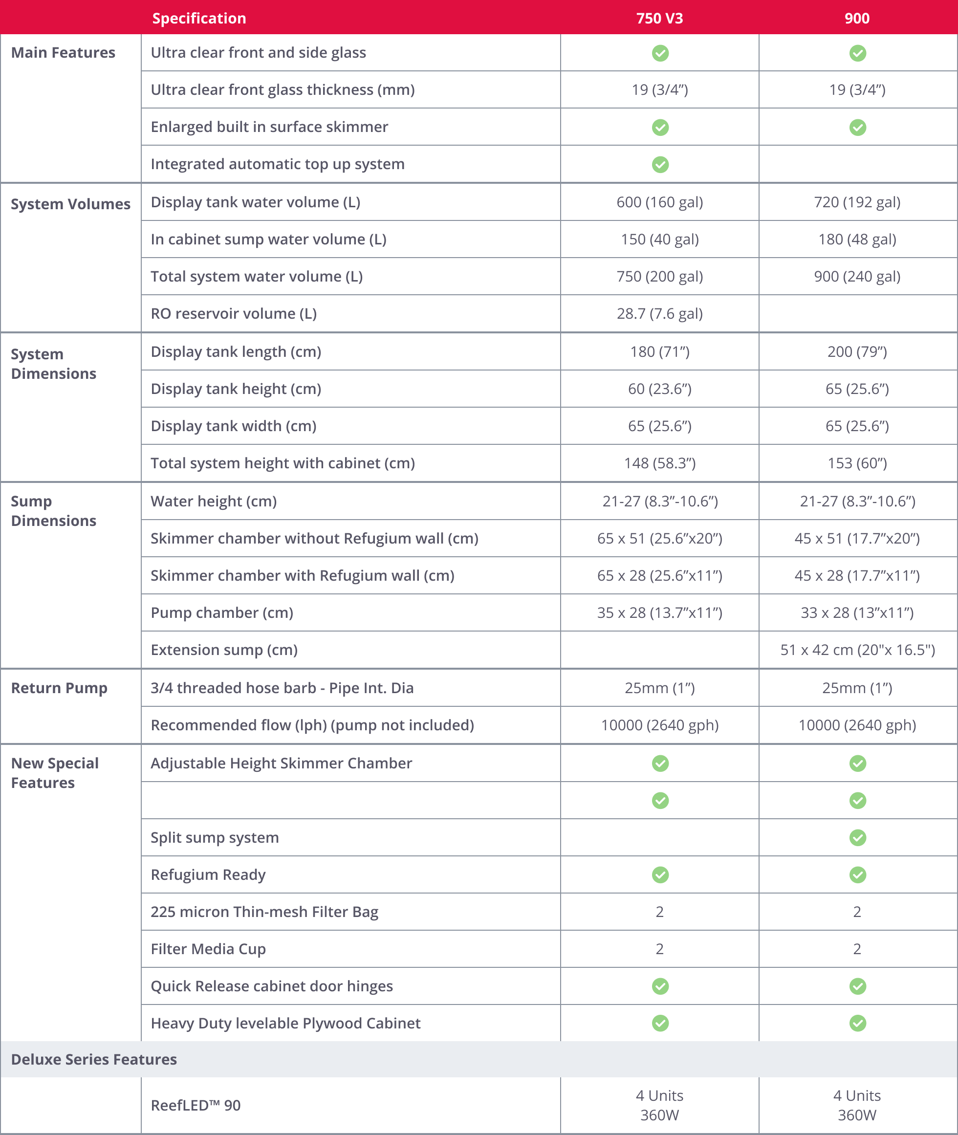 - Reefer™-Aquarien bestehen aus dickem und ultraklarem Glas mit einer abgeschrägten Kante, um ihr elegantes und modernes randloses Design zu unterstützen.