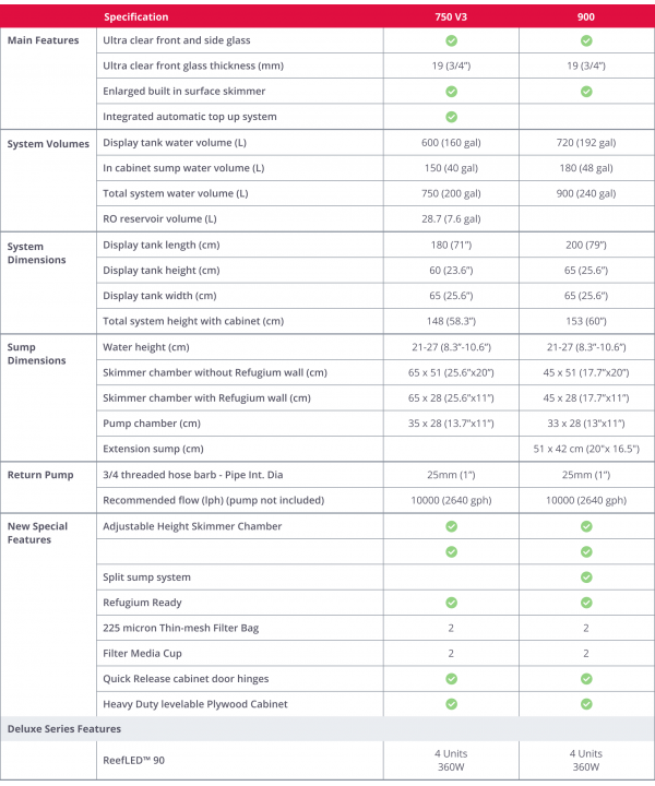 - Reefer™-Aquarien bestehen aus dickem und ultraklarem Glas mit einer abgeschrägten Kante, um ihr elegantes und modernes randloses Design zu unterstützen.