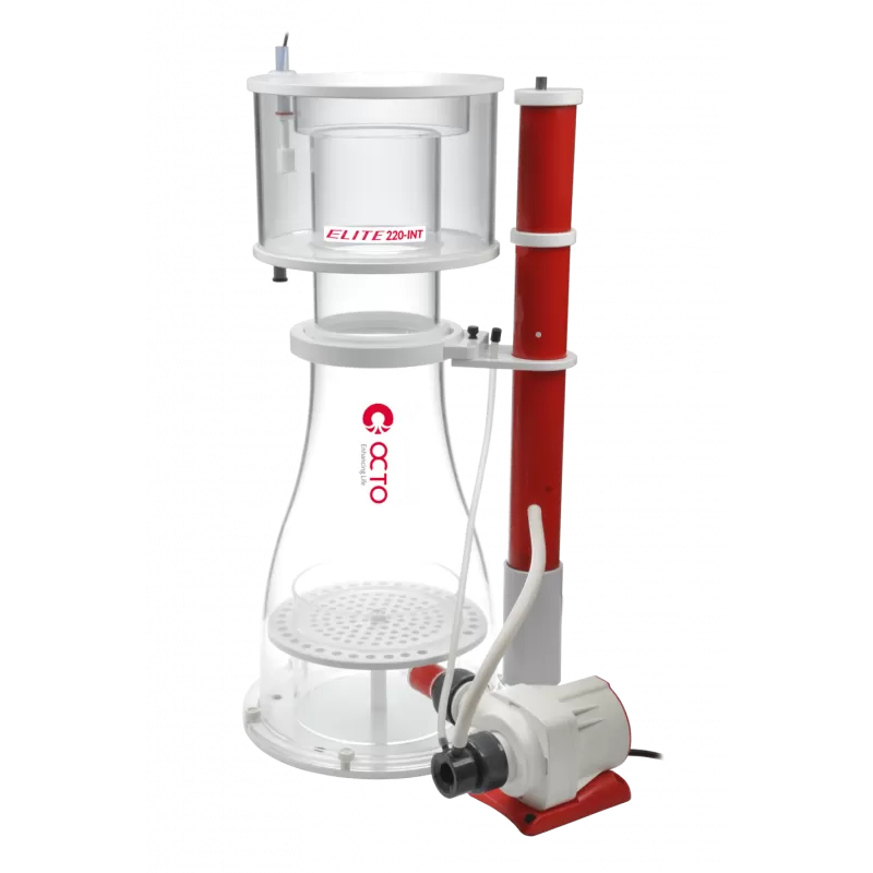 Reef Octopus Elite Protein Skimmer verfügen über ein hochwertiges gegossenes Acrylgehäuse und die zuverlässigen VarioS DC-Pumpen. Im Vergleich zu anderen Abschäumern derselben Kategorie sind die Abschäumer der Elite-Serie viel effizienter und leiser. Die Weinglasform ermöglicht eine reibungslose Übertragung der Blasen in den Auffangbecher, wo viele andere Abschäumer zweiteilige Körperdesigns verwenden, die scharfe Kanten erzeugen und Blasen brechen. Jeder Elite-Skimmer wird mit einem integrierten Schwimmerschalter für den Überlauf des Skimmerbechers geliefert, der direkt mit der VarioS-Pumpensteuerung verbunden ist und den Skimmer abschaltet, wenn der Becher voll ist, wodurch unordentliches und stinkendes Überlaufen verhindert wird.