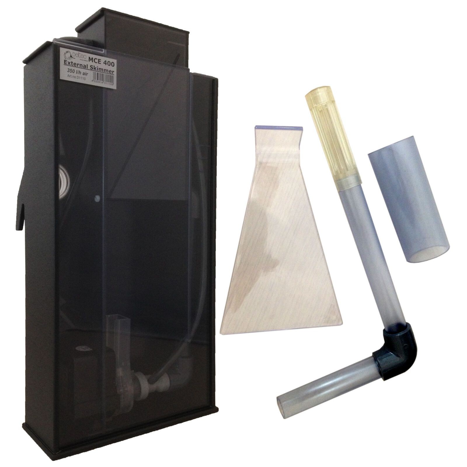 Die Deltec-Philosophie ist, dass Sie pro 1000 Liter Wasser im Aquarium 400 bis 500 Liter Luft pro Stunde benötigen, um eine effiziente Abschäumung zu erreichen. Dadurch eignet sich der MCE400 Skimmer für 500 Liter für ein normal gefülltes Riffaquarium oder 400 Liter für ein stark gefülltes Nur-Fisch-System.