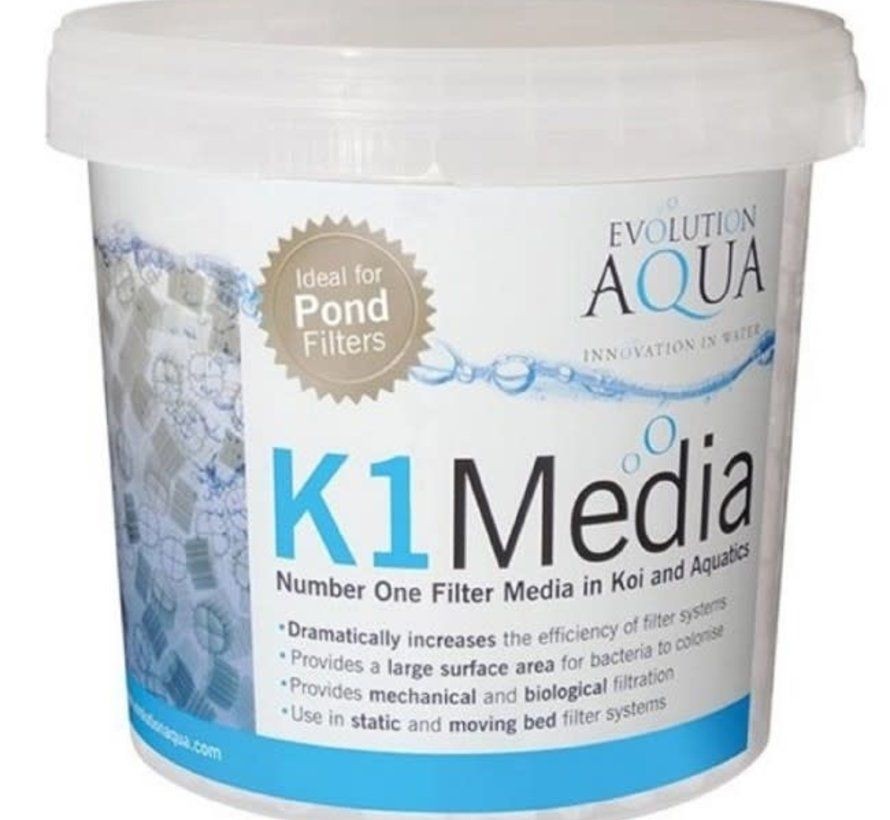 Evolution Aqua K1 Medium wird seit 10 Jahren wissenschaftlich getestet und in Fischfarmen und Kläranlagen eingesetzt und ist nun auch für Aquarien- und Koi-Liebhaber unter dem Namen Kaldnes K1 erhältlich. Dieses Medium kann in jedem Tank, Behälter oder jeder Filterkammer verwendet werden. Voraussetzung für einen einwandfreien Betrieb ist, dass Luft so in den Behälterboden eingeblasen wird, dass das Medium gut zirkulieren kann.
