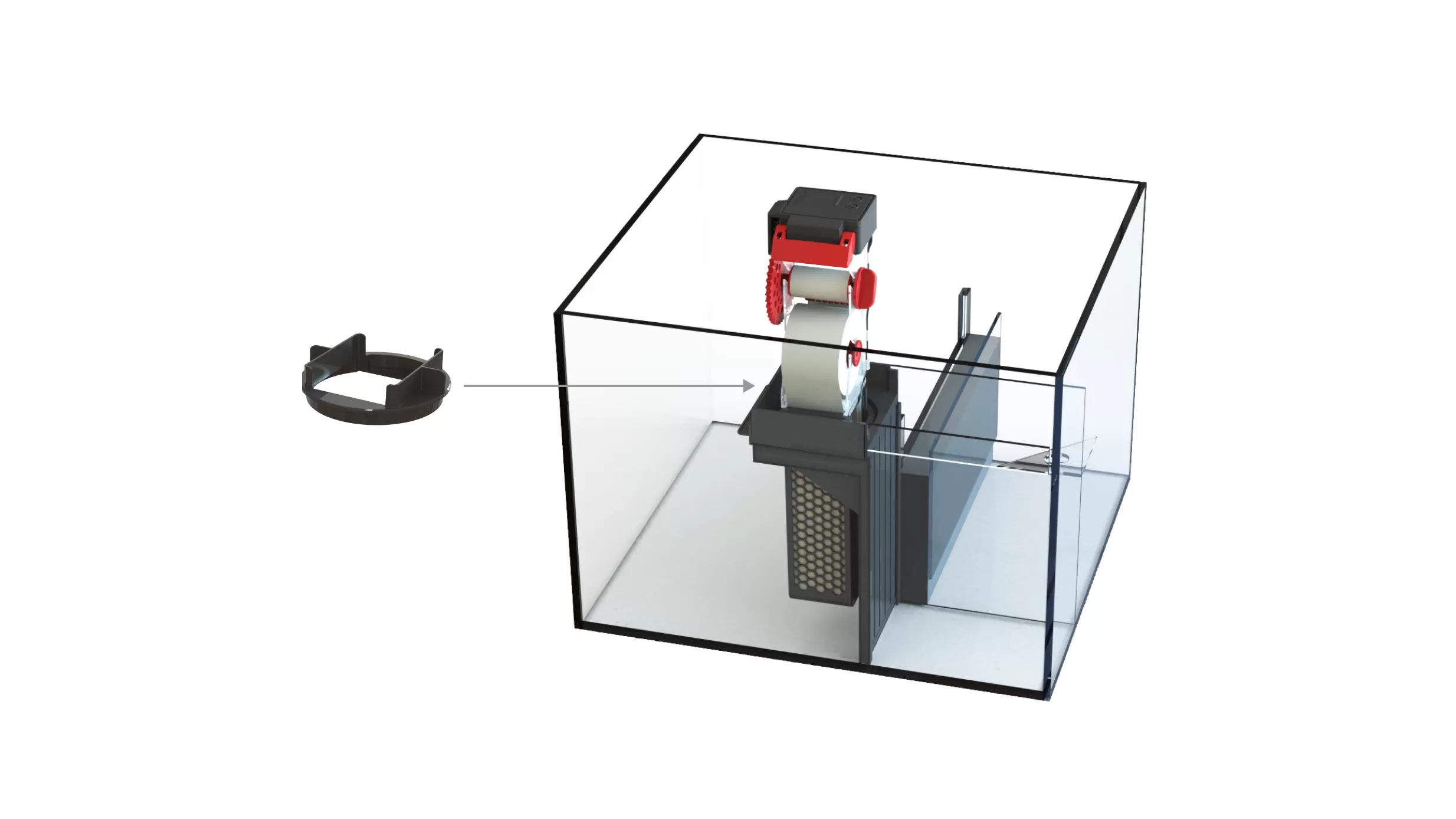 Die NanoMat ist speziell für den Einsatz in den Red Sea Max Nano G2-Systemen konzipiert, eignet sich aber auch für andere Nano-Aquarien mit einem standardmäßigen 4-Zoll-Filterstrumpfhalter.