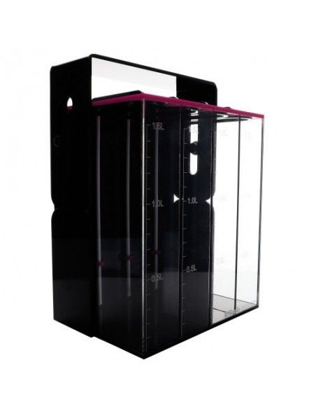 Die einzelnen Kammern fassen jeweils 1,5 Liter und dienen gleichzeitig der Füllstandskontrolle. Die einzelnen Kammern können beispielsweise mit Dupla Marin Spurenelementen wie KH+ Liquid, Magnesium Liquid, Calcium Liquid oder dem Spurenelement Mix Liquid befüllt werden.