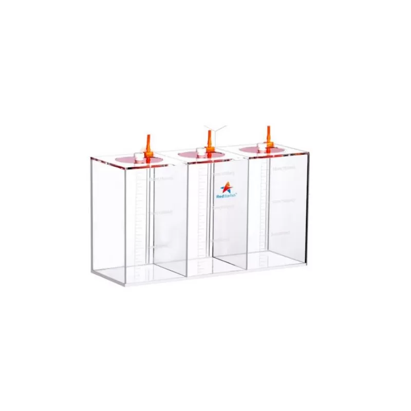 Ausgestattet mit Anschluss für den Schlauch zur Dosierpumpe. Oben leicht zu öffnen und somit zu befüllen. 3 Reservoirs und dennoch kompakt. Jeder Behälter hat ein Fassungsvermögen von 1,5 Litern. Zeigen Sie Inhalte im CM- oder CC-Messgerät an, um die Bedienung und Überwachung zu vereinfachen