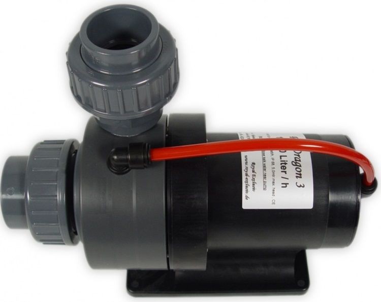 Der Royal Exclusive Red Dragon ist nahezu geräuschlos und gilt daher als etwas ganz Besonderes. Denn diese Pumpen bestehen aus Siliziumkarbid. Nach Diamant die härteste und verschleißfesteste Substanz, die es gibt. Daher gibt es eine lebenslange Garantie auf die Lager. Außerdem kann die Pumpe nicht rosten und ist somit bestens für Meerwasseraquarien geeignet. Die Schrauben der Pumpe sind aus Titan, was sie noch stärker macht.