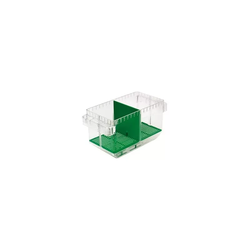 Freischwimmender Zuchtbehälter. Auch als Anzuchtbehälter geeignet. Mit Trennwand zum Platzieren von zwei Fischen.