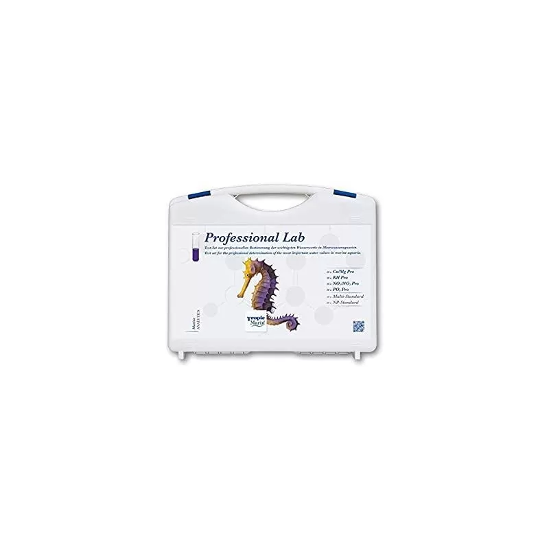 Die hochpräzisen Profi-Wassertests von Tropic Marin® gibt es jetzt als Set im handlichen und stabilen Koffer. Folgende Wasserwerte können mit dem Tropic Marin® Professional Lab professionell bestimmt werden: Calcium, Magnesium, Karbonathärte, Nitrit, Nitrat und Phosphat. Referenzlösungen zur Überprüfung der Reagenzien sind ebenfalls enthalten. Die einzelnen Tests und deren Zubehör sind im Koffer gut sortiert und beschriftet, sodass keine Verwechslungen auftreten können. Für gebrauchte Tests können Nachfüllpackungen erworben werden, sodass einer langfristigen Nutzung nichts im Wege steht.