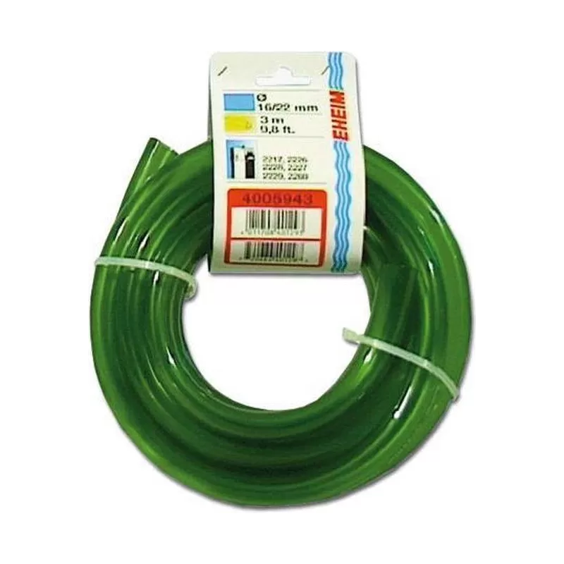 Der bekannte flexible grüne Schlauch von Eheim mit einem Innenmaß von 16 mm und einem Außenmaß von 22 mm.