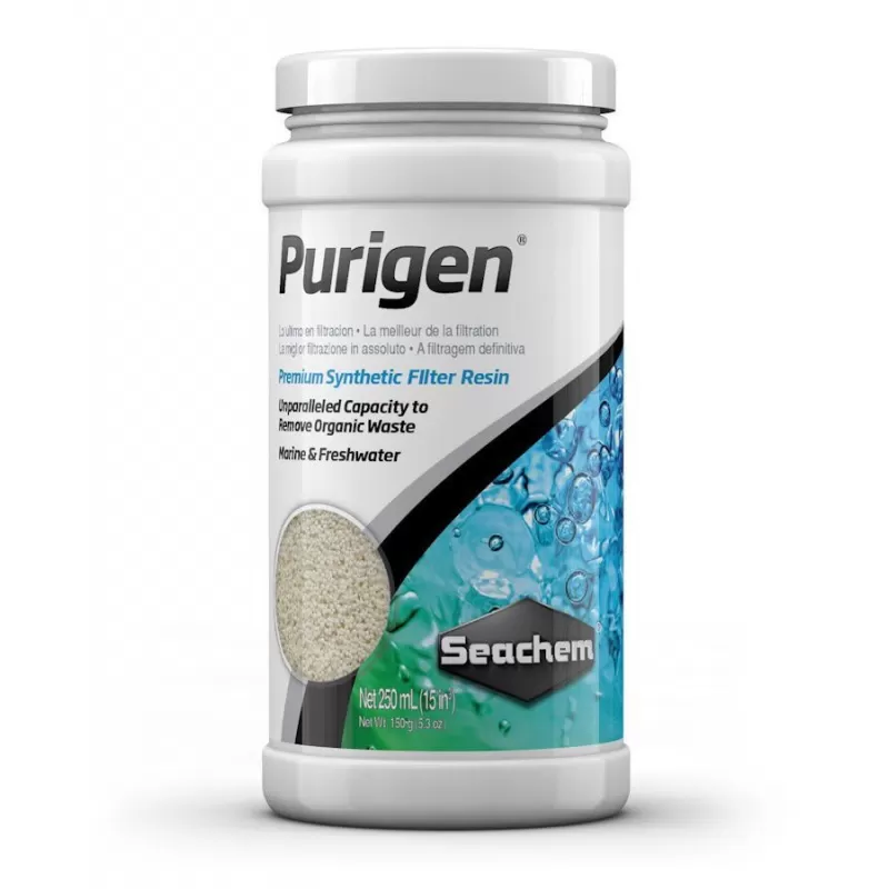 Purigen™ ist ein synthetisches Premium-Sorbens, das sich von anderen Filtrationsprodukten unterscheidet. Entfernt Proteine, Nitrite und Nitrate, Ammoniak und ein breites Spektrum an organischen Stoffen, aber die Auswirkungen auf Spurenelemente sind minimal.