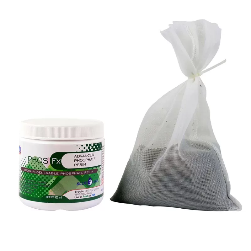 Verwenden Sie Phos Fx in Ihrem System, bis der gewünschte Phosphatgehalt erreicht ist, entfernen Sie dann den Beutel, spülen Sie ihn aus und verschließen Sie ihn wieder in einem luftdichten Behälter, um ein Austrocknen zu verhindern.