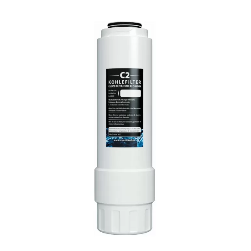 Der myAqua Kohlefilter C2 dient als Nachfilter und sorgt in Kombination mit dem myAqua Kohlefilter C1 für die sichere und effektive Entfernung von Chlor, Herbiziden, Pestiziden und Medikamentenrückständen.