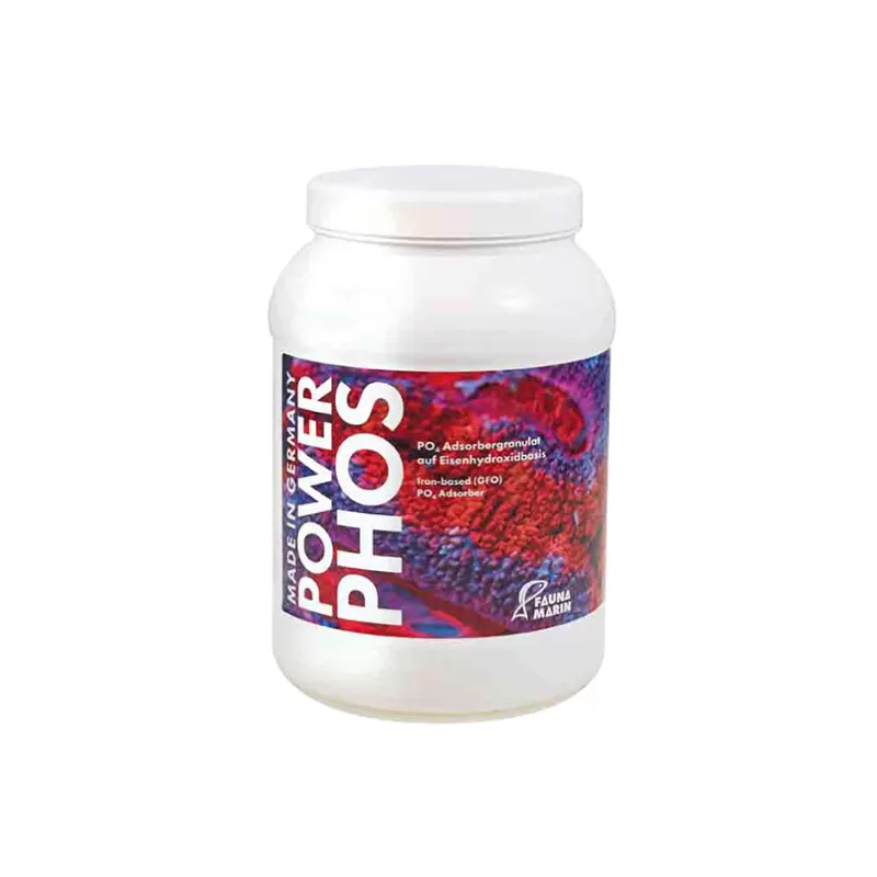 Fauna Marin Ultra Power Phos ist ein Adsorber auf Eisenhydroxidbasis, der Phosphate und Silikate sicher aus dem Aquarium entfernt. Die Schadstoffe werden an der Oberfläche von Fauna Marin Ultra Power Phos gebunden und nicht freigesetzt.