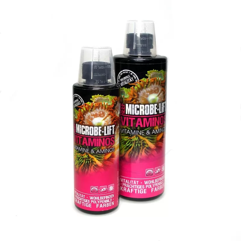 Vitaminos verbessert das Wohlbefinden, fördert die natürliche Farbe und das gesunde Wachstum aller Aquarienbewohner.