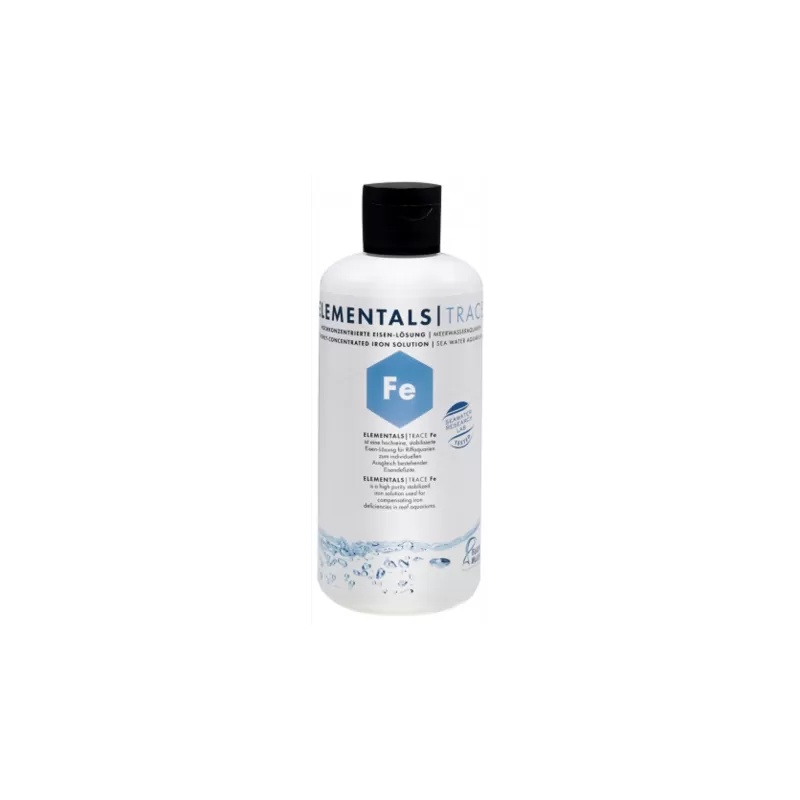 Elementals Trace Fe ist eine hochkonzentrierte Eisenlösung für Meerwasseraquarien zum Ausgleich von bestehendem Eisenmangel.