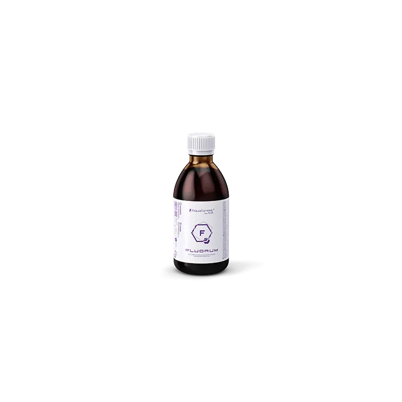 Ergänzung mit hochkonzentriertem Fluorid. Fluor ist einer der wichtigsten Mikronährstoffe im Meerwasser. In einem geschlossenen Aquariensystem entfernen Abschäumer und Filtermedien Fluorablagerungen aus dem Wasser, weshalb eine Zugabe erforderlich ist. Fluor ist am Verkalkungsprozess beteiligt und unterstützt das Skelettgewebe. Natriumfluorid und Calciumfluorid sind das Baumaterial von Korallenskeletten, daher ist deren Zugabe in einem Riffaquarium notwendig. Ausgewogene Zusätze verstärken effektiv die blaue und weiße Färbung von SPS-Korallen und heben die Fluoreszenz der meisten Korallen hervor. Enthält Spuren von Kalium und Jod.