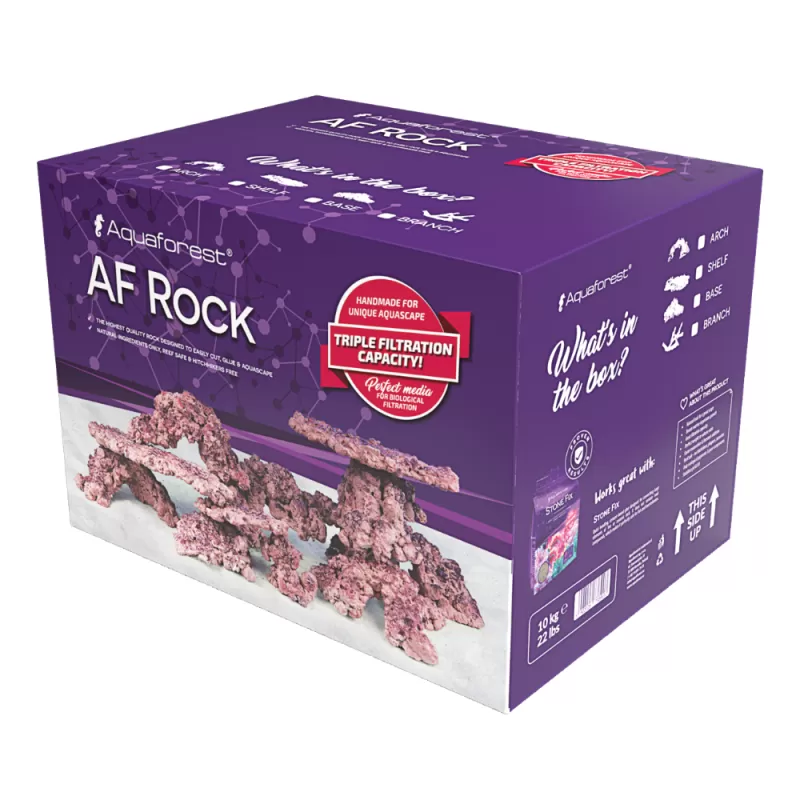 De eenvoudige kolonisatie door nuttige micro-organismen verkort het rijpingsproces van het aquarium aanzienlijk, vooral bij gebruik van Bio S-bacteriën. De set bestaat uit platen, brokken en takken. De handmatige selectie en productie van de AF Rock garandeert het unieke karakter van elke set en garandeert tegelijkertijd de unieke vorm van alle componenten. Doordat AF Rock vrij is van gifstoffen en onzuiverheden, is het volkomen veilig in gebruik en vergroot het het filteroppervlak in het aquarium.