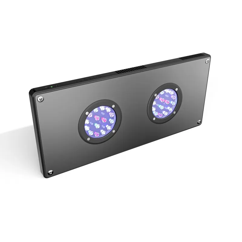 Aqamai LRM is de professionele LED-lamp voor uw aquarium, volledig programmeerbaar via App Aqamai (Android-Apple iOS). Ontwikkeld met een esthetische kwaliteit in combinatie met efficiënte prestaties. Het slanke en stijlvolle ontwerp van 20 mm dik totaal omvat een stil koelsysteem, 2 clusters van 15 LED's, 100W en 6 kleurkanalen, te beheren door mobiele toepassing (kleurtemperatuur en lichtintensiteit)