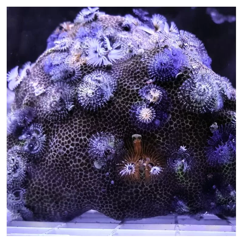 De Porites Bisperma is een opvallende koraalsoort die bekend staat om zijn stevige structuur en zachte kleuren. Deze steenkoraal is populair onder rifliefhebbers vanwege zijn duurzaamheid en relatief gemakkelijke verzorging. Porites behoren tot de belangrijkste rifbouwende koralen en bieden onderdak aan een breed scala aan riforganismen.