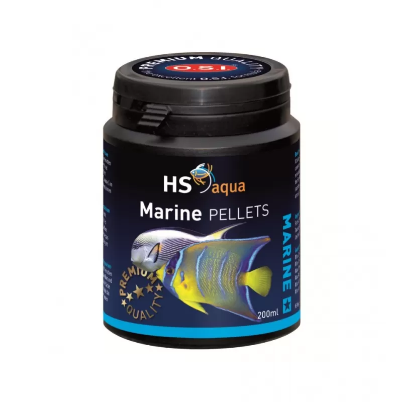 HS Aqua Marine Pellets 200 ml is uitgewogen, volledig voer voor alle zoutwater aquariumvissen. Dit voer heeft een hoog gehalte aan licht verteerbare, plantaardige en dierlijke eiwitten en kleurversterkende, natuurlijke pigmenten.