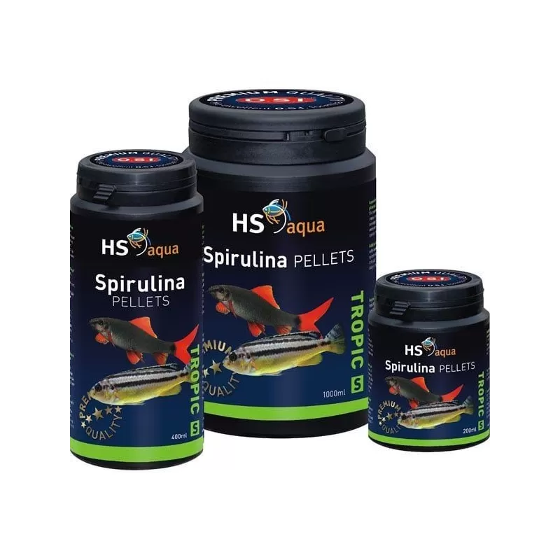 HS Aqua Spirulina Pellets is aanvullend voer voor zoetwatervissen, die veel behoefte hebben aan plantaardig voer. Het voer stimuleert het immuunsysteem van de vissen en bevordert de kleur van de schubben door het hoge pigmentgehalte.