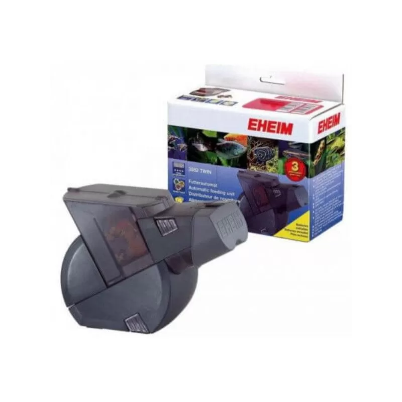Voederautomaat met 2 afzonderlijke kamers (2x80ml) om bijvoorbeeld pelletvoer en vlokvoer te voeren.