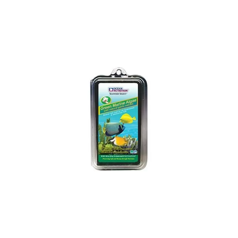 Ocean Nutrition Green seaweed 12 gr. Ocean Nutrition Green Seaweed zijn groene algenbladeren die geschikt zijn voor alle herbivore zoet- en zeewatervissen. Het is een natuurlijk en erg rijk voedingssupplement voor grazers wat rijk is aan vitamine C en makkelijk verteerbaar is.