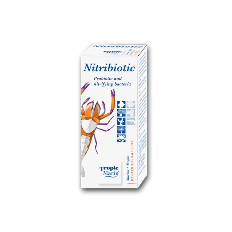 Tropic Marin Nitribioticum is een combinatie van probiotische en nitrificerende bacteriën in één bereiding die de afweer van het immuunsysteem van vissen en garnalen versterkt en de waterkwaliteit verbetert. De nitrificerende bacteriën starten efficiënt het nitrificatieproces, d.w.z. het proces waarbij toxische ammoniak wordt afgebroken tot niet-toxisch nitraat.