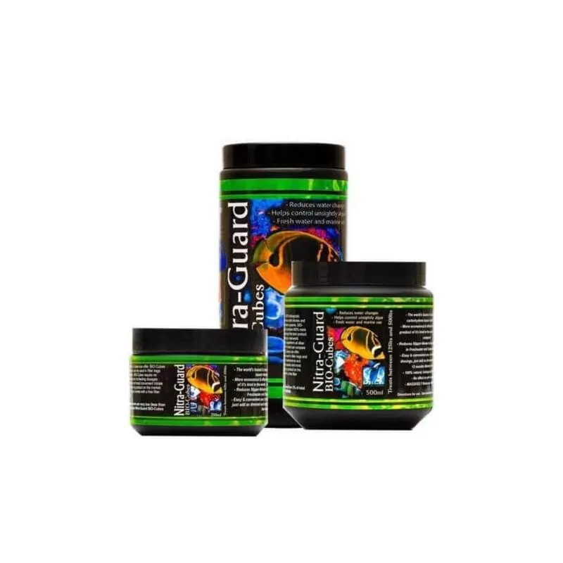 BIO-Cubes zijn gemaakt van 100% biologisch afbreekbare polymeren die zowel nitraten als fosfaten effectief verwijderen uit zowel zee- als zoetwatersystemen. BIO-Cubes hebben een zeer groot oppervlak en bevatten 400% meer koolhydraten dan welk ander merk dan ook, waardoor het het beste product in zijn soort ter wereld is. Onafhankelijke tests in real-world scenario's hebben bewezen dat BIO-Cubes veel beter presteren dan alle andere concurrerende producten. Geen enkel ander product in zijn soort kan worden vergeleken met de explosieve prestaties die BIO-Cubes kan bieden. BIO-Cubes zijn zeer veelzijdig en kunnen worden gebruikt in filterzakken en gefluïdiseerde reactoren. BIO-Cubes hebben geen onderhoud nodig en geen voedingsdoseringen, waardoor het het gemakkelijkste en handigste nitraat- en fosfaatverwijderingsproduct op de markt is. Nitra-Guard BIO-Cubes wordt geleverd met een gratis filterzak bij elke pot.
