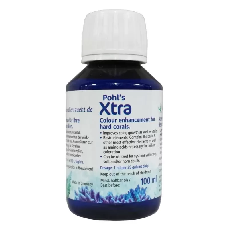 Korallen Zucht Xtra - 100 ml is een krachtig voedingssupplement dat speciaal is ontwikkeld voor koralen in je aquarium. Het levert een uitgebalanceerde mix van essentiële sporenelementen, aminozuren en vitamines, die helpen bij de groei, kleurontwikkeling en algehele gezondheid van koralen. Dit product ondersteunt de immuniteit van koralen en versterkt hun vermogen om zich te herstellen van stress, wat resulteert in een gezonder rifecosysteem.