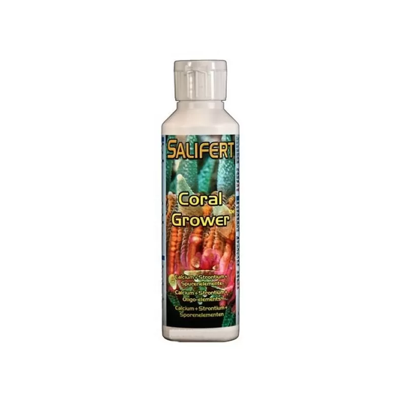 Salifert Coral grower bevat calcium, strontium en sporenelementen (met uitzondering van jodium) die nodig zijn voor de groei en vermenigvuldiging van koralen.