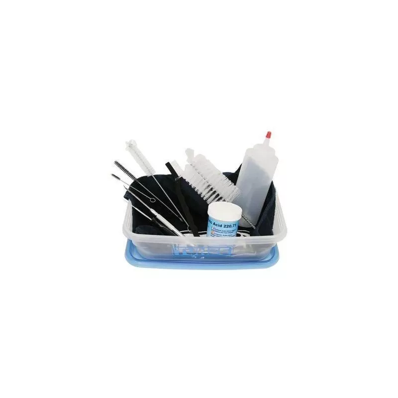 Complete reinigingsset voor aquarium pompen, filters en skimmers. Dit alles verpakt in een plastic container.