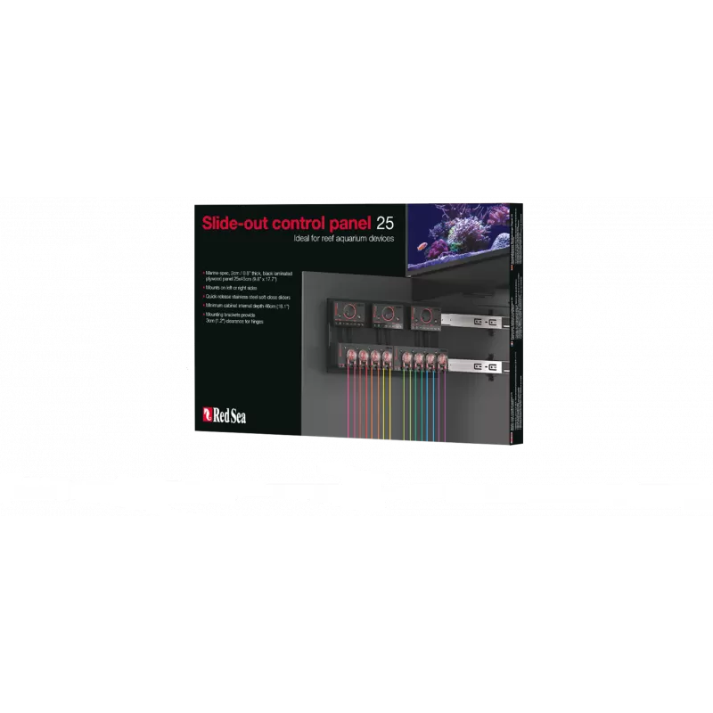 Ontworpen met de behoeften van hobbyisten in gedachten, helpt het nieuwe uitschuifbare bedieningspaneel van Red Sea u om het meeste uit uw kastruimte te halen door uw doseerders, controllers en andere apparaten op één gemakkelijk toegankelijke plaats te plaatsen.