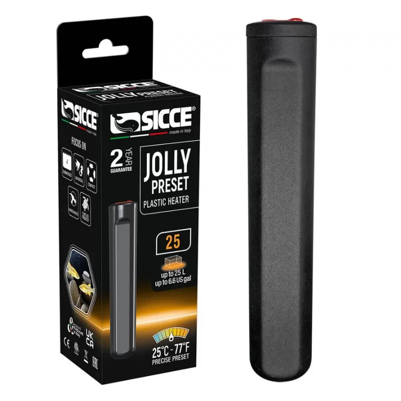De Sicce Jolly Preset 25 is een ideale keuze voor kleine aquaria waar een stabiele temperatuur cruciaal is. De eenvoudige installatie en veilige werking maken het een gebruiksvriendelijke verwarmer voor zowel beginners als ervaren aquarianen.