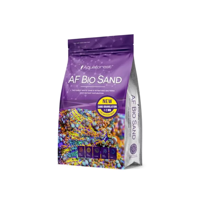 Aquaforest AF Bio Sand is een levend aragonietzand verrijkt met nuttige bacteriën, ideaal voor het creëren van een stabiel biologisch evenwicht in zeeaquaria. Dankzij de toevoeging van natuurlijke bacterieculturen ondersteunt dit zand een snelle rijping van het aquarium en vermindert het opbouw van schadelijke stoffen zoals ammoniak en nitriet.