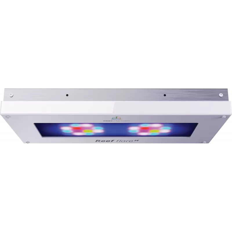 Reef Factory biedt 3 categorieën lampsterktes: Reef flare S - 60 W, Reef flare M - 120 W en Reef flare L - 180 W. De lampen kunnen worden bevestigd aan de rand van je aquarium of worden opgehangen.
