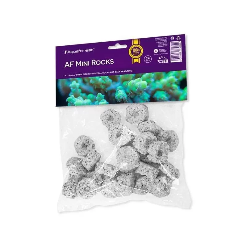 Aquaforest Mini Rocks zijn een kunstmatig alternatief voor natuurlijk levend gesteente, ontworpen uit een lichtgewicht en zeer poreus materiaal dat gemakkelijk te snijden, te schikken en te bevestigen is aan de verharding voor probleemloos fraggen.